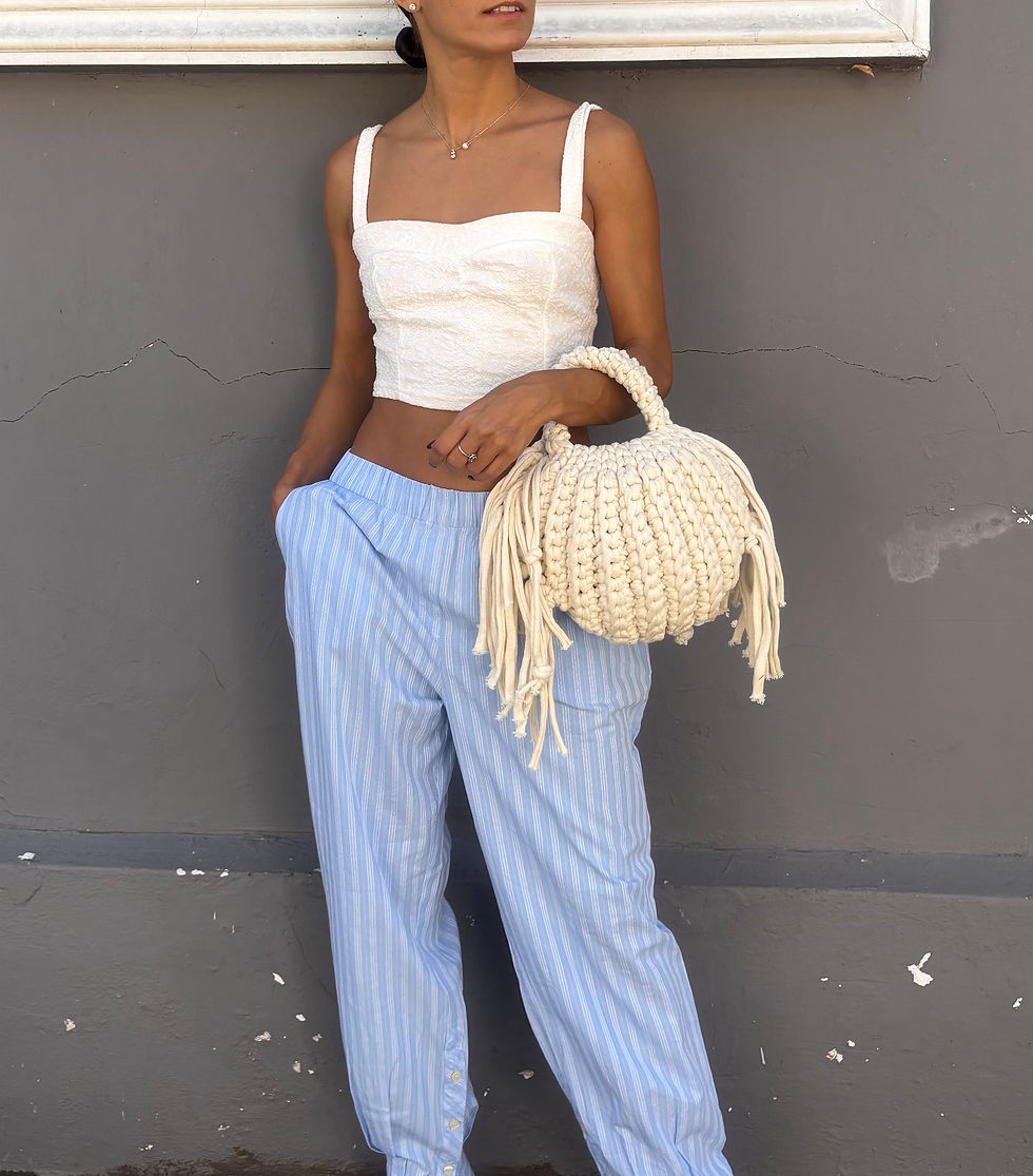 Introducing the Pumpkin bag –  a statement piece inspired by natural curves and cozy textures. Made  from soft, durable cotton, it features chunky woven details and flowing fringes on the sides for a boho-chic touch. With its comfortable handle, spacious interior and eye-catching design, it’s the perfect accessory to carry everyday.